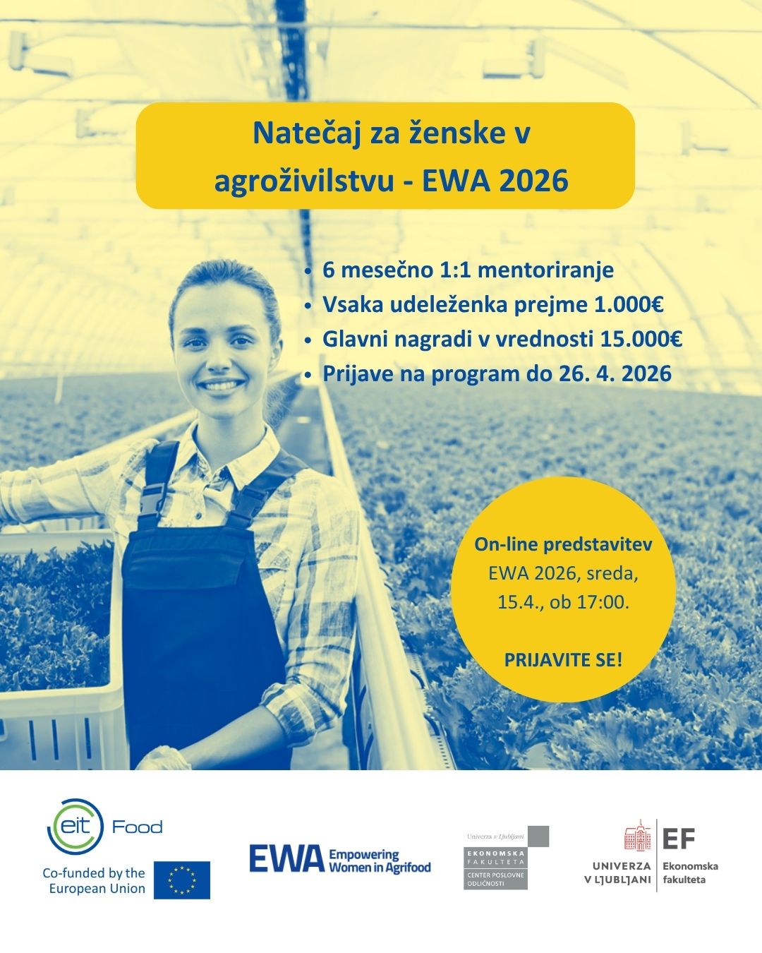 Več informacij in prijava: https://www.eitfood.eu/open-calls/call-for-empowering-women-in-agrifood-ewa-grow-programme-2026-participants