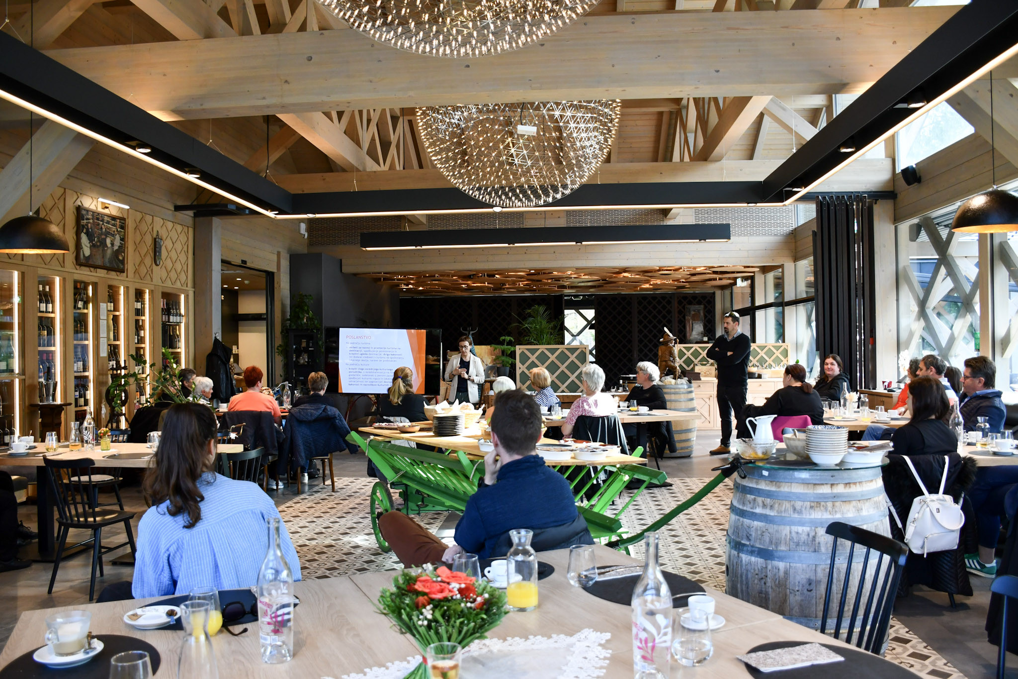 Strokovno ekskurzijo smo začeli z zajtrkom v Restavraciji Camp Šobec. Po zajtrku nam je direktorica Javnega zavoda Turizem in kultura Radovljica, Kaja Beton, predstavila predstavila delovanje zavoda ter približala razvoj in utrip destinacije.